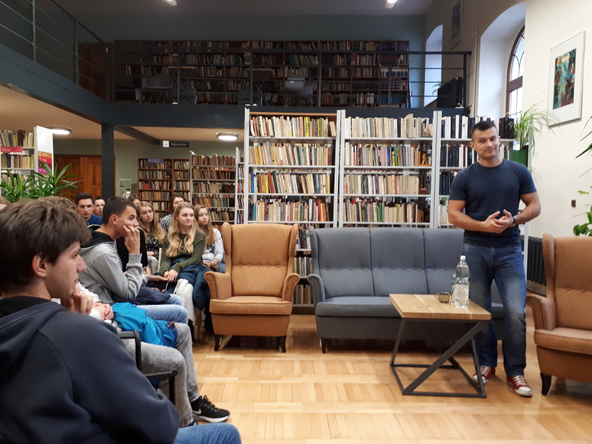 Dziś uczniowie klas III LO wzięli udział w spotkaniu autorskim z Jakubem Małeckim. Powieści pisarza będą dostępne w Bibliotece PubliczneJ.