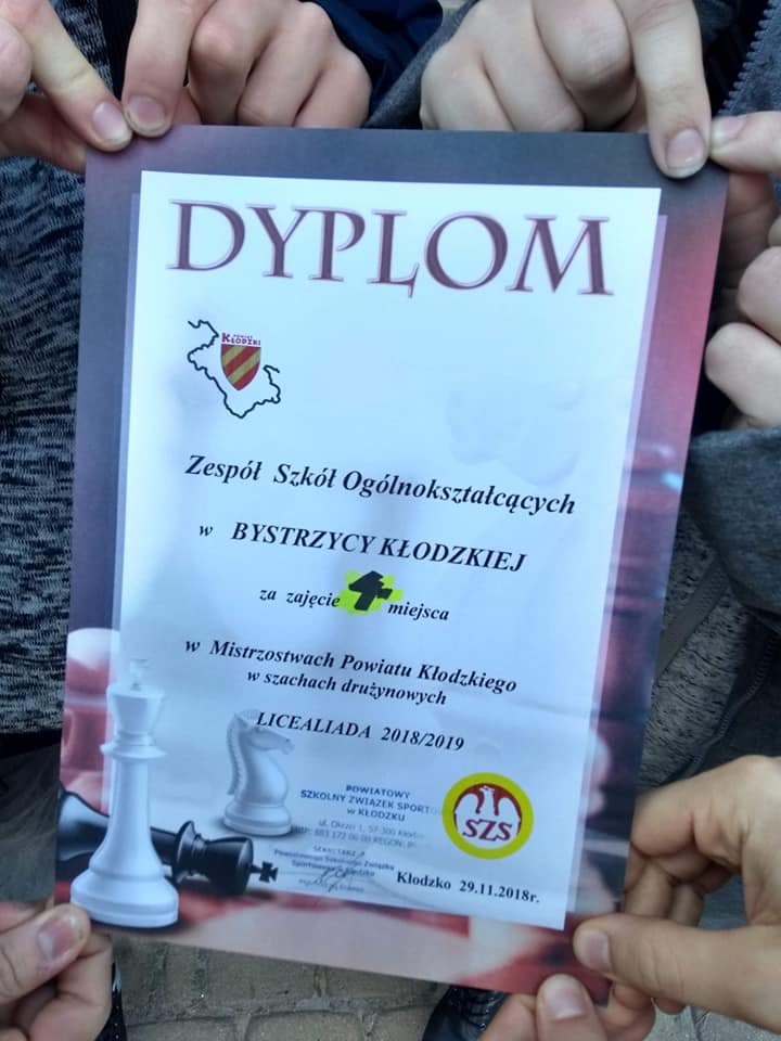 Dzisiaj drużyna szachowa z naszej szkoły zdobyła IV miejsce w Mistrzostwach Powiatu. Po latach nieobecności powróciliśmy na szachownice naszego powiatu. Skład drużyny: Magda Kowalska, Karol Kunicki, Łukasz Dubik i Korneliusz Patynko.