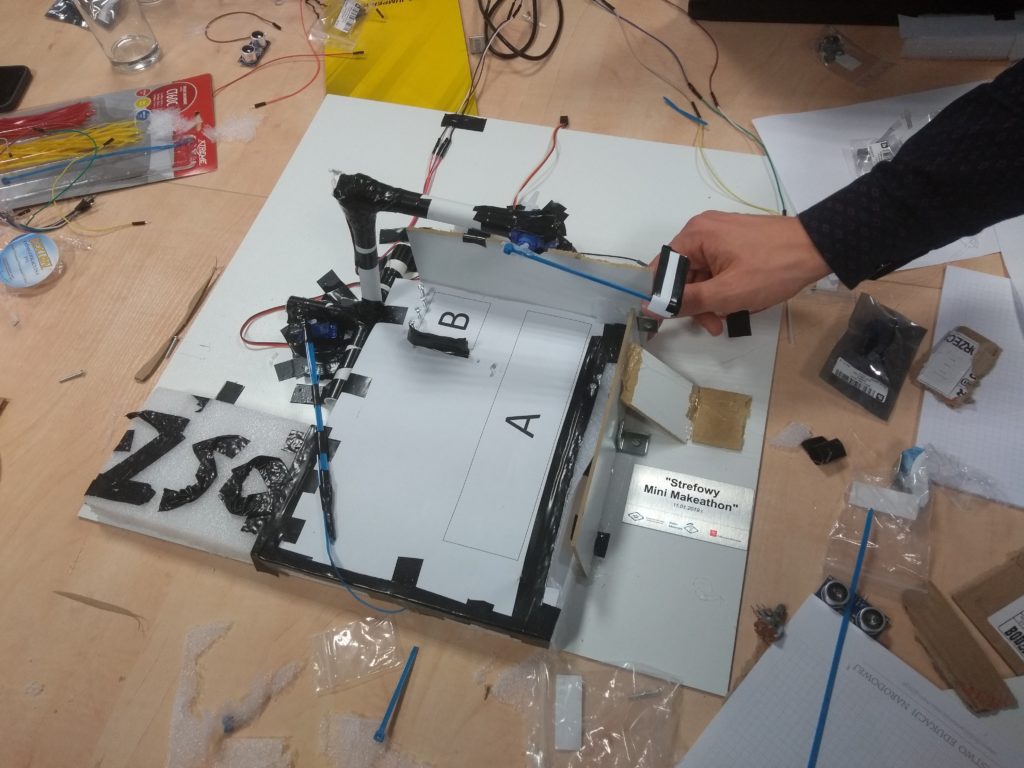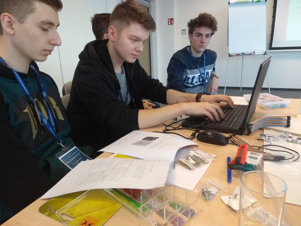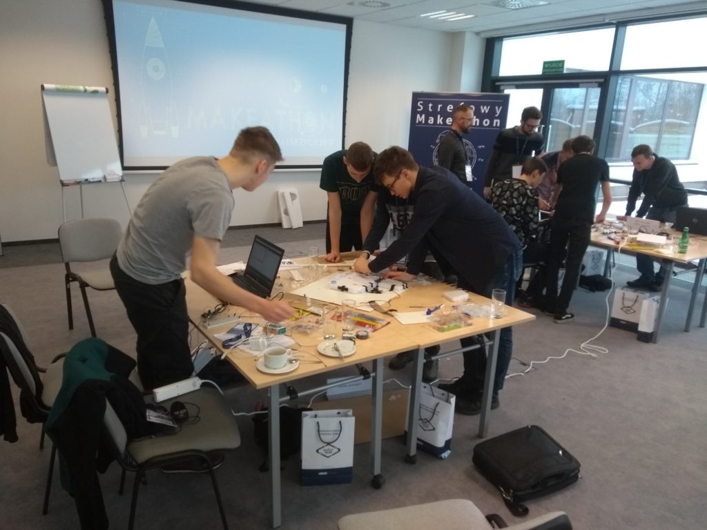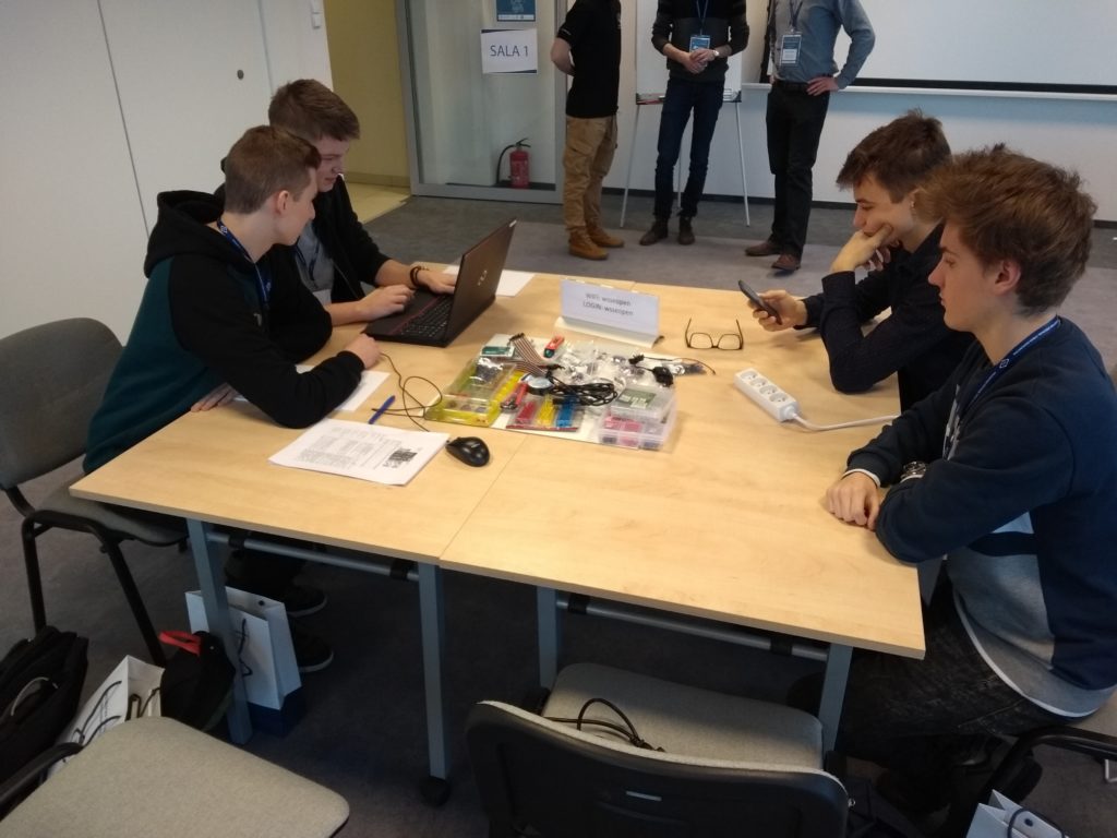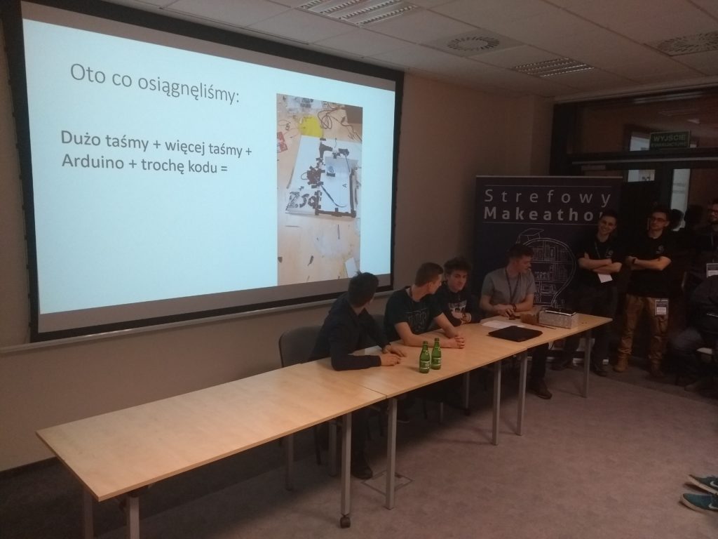 Przyjechali, zobaczyli, zwyciężyli. Uczniowie naszej szkoły: Max Gacek, Mateusz Górny, Karol Kunicki i Miłosz Romanowski zdobyli dzisiaj I miejsce w I Strefowym Makeathon’ie w Wałbrzychu. Ich projekt okazał się najszybszy w działaniu. Praca polegała na odpowiednim zaprojektowaniu, wykonaniu i oprogramowaniu mechanizmu przesuwającego przedmiot. Połączenie mechaniki, informatyki, fizyki i robotyki. Serdecznie gratulujemy i życzymy dużo radości przy następnych projektach.
