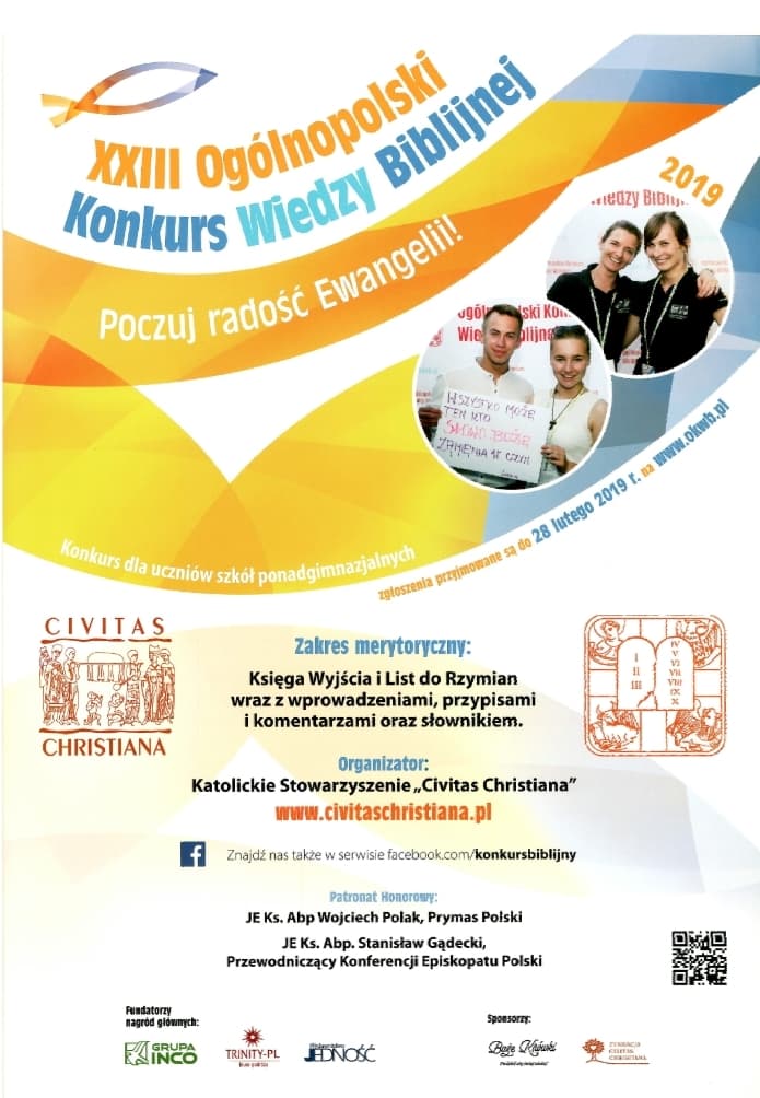 W środę 13 marca odbył się etap szkolny Ogólnopolskiego Konkursu Wiedzy Biblijnej, w którym uczestniczyło 38 uczniów liceum. Do etapu diecezjalnego zakwalifikowali się:
