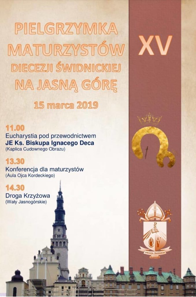 Pielgrzymka maturzystów na Jasną Górę W dniu 15 marca grupa 46 uczniów klas trzecich liceum wraz z wychowawczyniami i p. Andrzejem Prasałem wzięła udział w XV Pielgrzymce Maturzystów Diecezji Świdnickiej na Jasną Górę.