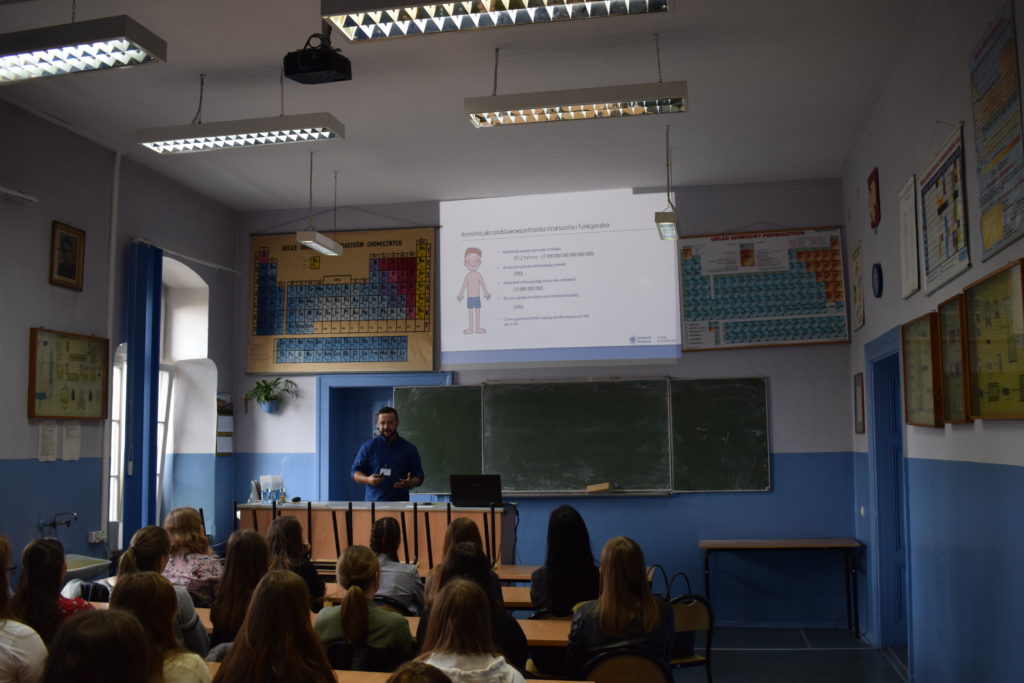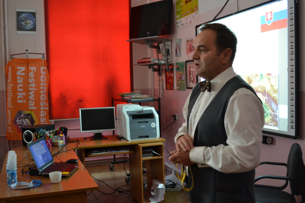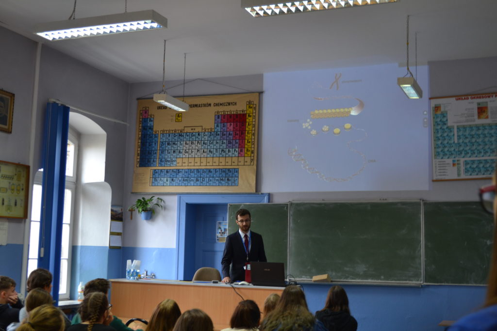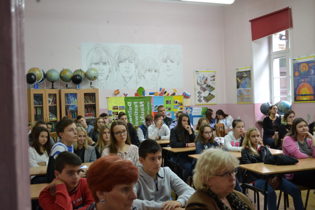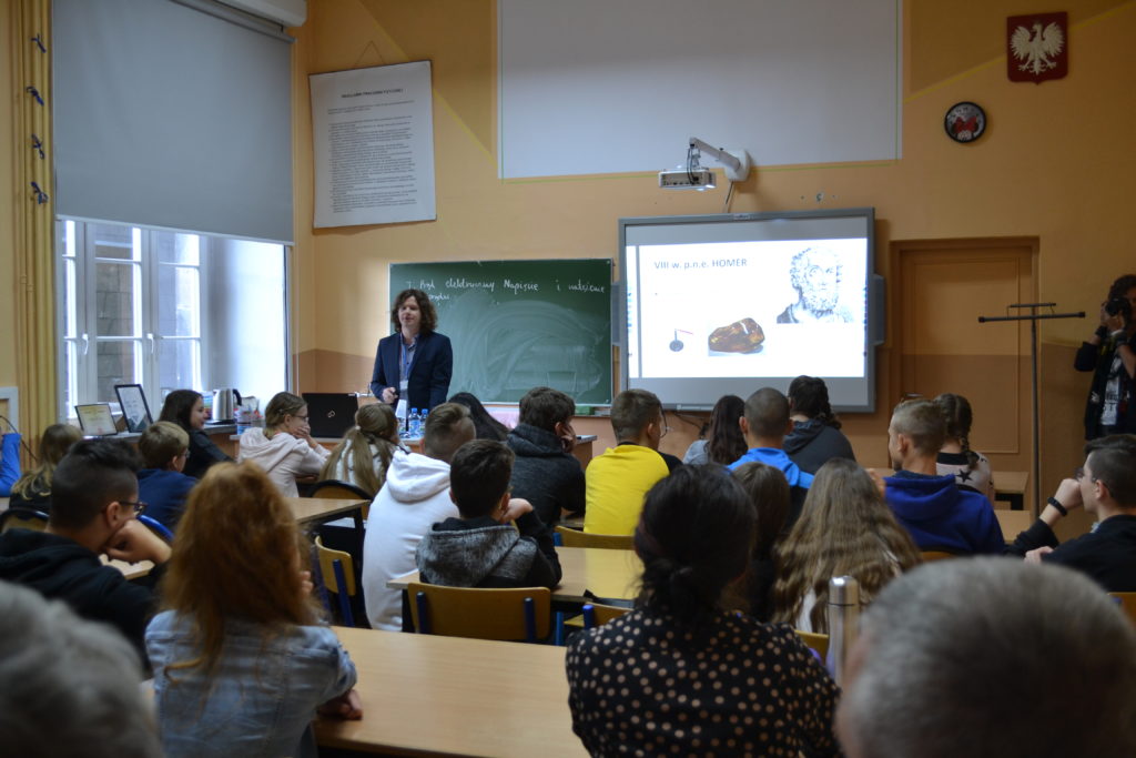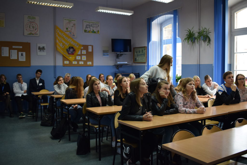 W ramach regionalnej edycji XXII DFN w naszej szkole pasjonaci fizyki z I c LO pod merytoryczną opieką p. Sylwii Pierzchały-Ryznar przygotowali dla uczniów szkoły podstawowej doświadczenia fizyczne. Skorzystali z oferty uczniowie klasy szóstej ze Szkoły Podstawowej ze Szczytnej. Nie zawiedli się. Licealiści po rozłożeniu sprzętu zaprezentowali przykładowy mechanizm polegający na połączeniu żarówki z prądem i tym samym jej zapaleniu poprzez wzrost napięcia w urządzeniu. Uczestnicy warsztatów podzieleni zostali na pięć zespołów, później pod kierunkiem licealistów i p. Sylwii Pierzchały-Ryznar budowali obwody. Praca miała charakter konkursu, więc były też nagrody.