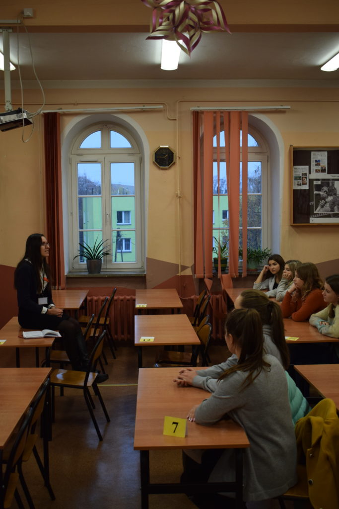 Prowadząca zajęcia była bardzo otwarta i sprawiła, że poczuliśmy się swobodnie, nie potraktowaliśmy tych zajęć jako przymusu. Przede wszystkim rozmawialiśmy o tym, jak wygląda praca w banku, o wyborze kierunków studiów; co jest dla nas ważne. Omawialiśmy także praktyki i kursy dla pracowników banku. Zwróciliśmy uwagę na pożądaną osobowość pracownika. Dzięki improwizowanym scenkom poznaliśmy przebieg rozmowy kwalifikacyjnej w Santander Bank Polska SA. Tu musieliśmy wykazać się zdolnością przekonywania ludzi do podjęcia różnych decyzji. Były też nagrody dla uczestników scenek.