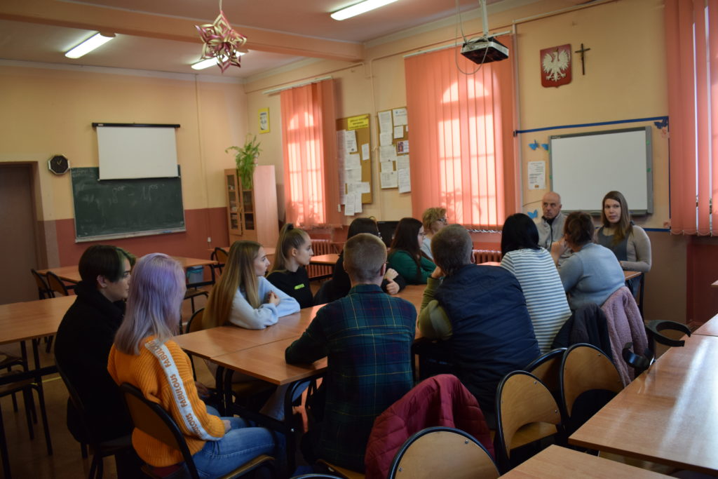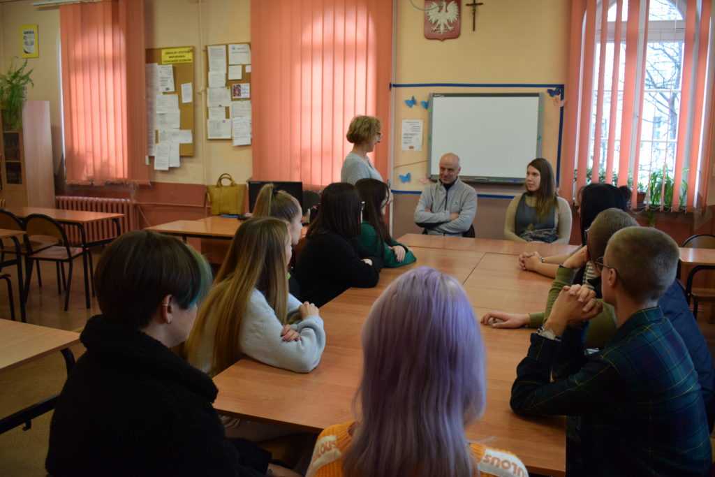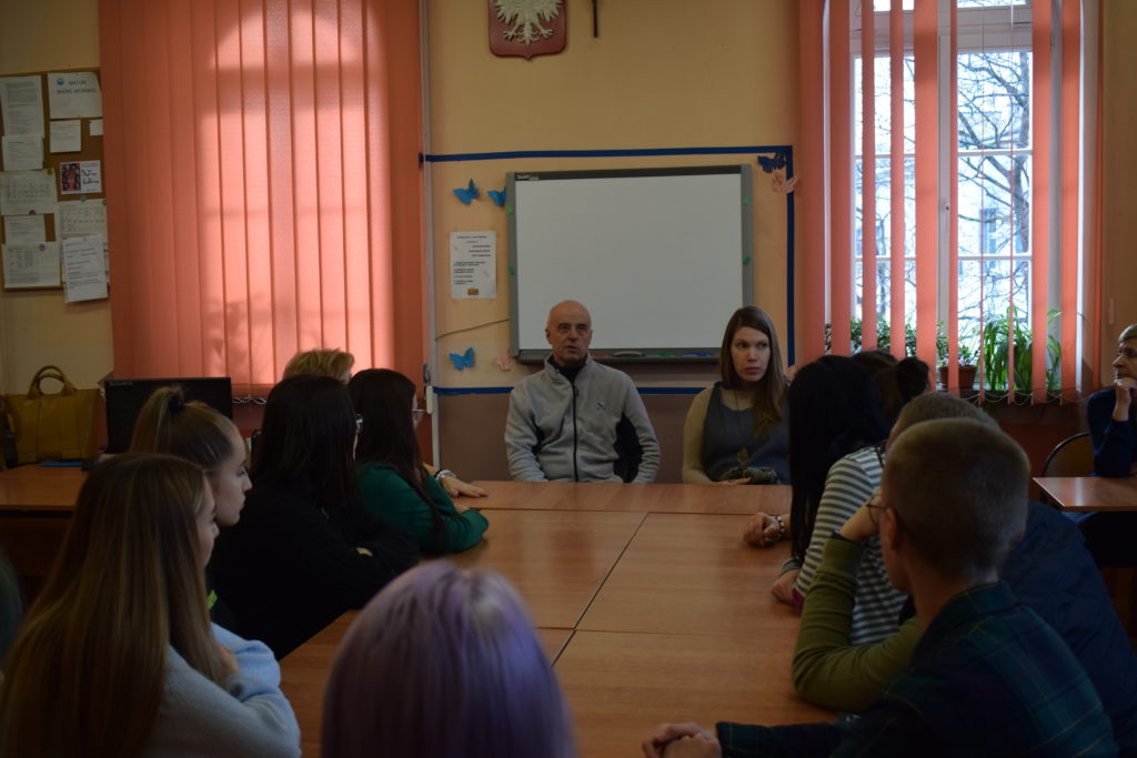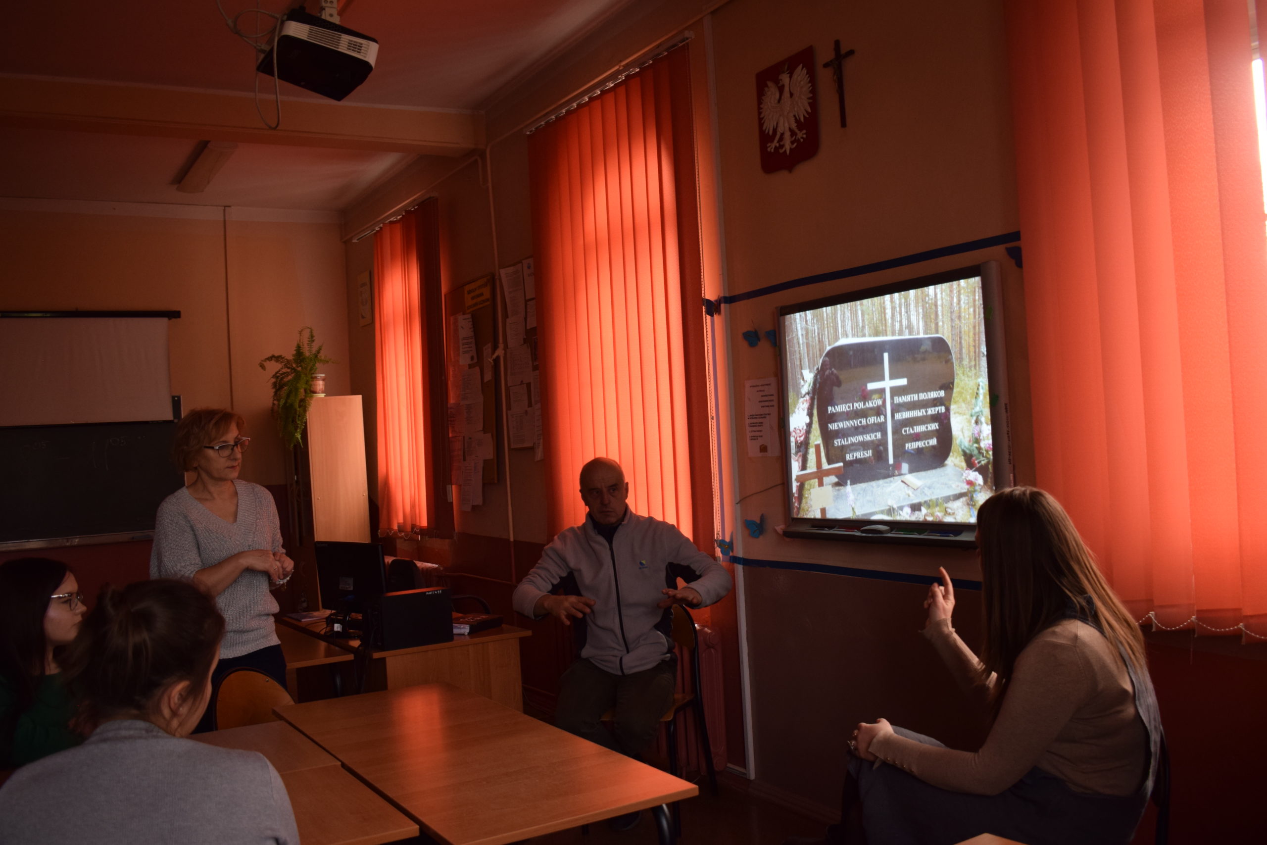 25 listopada br. uczniowie klasy II B i III B z grup humanistyczno-dziennikarskich spotkali się z Eleną Kondrachiną pracownicą Centrum Naukowo-Informacyjnego „Memoriał” w Sankt Petersburgu.