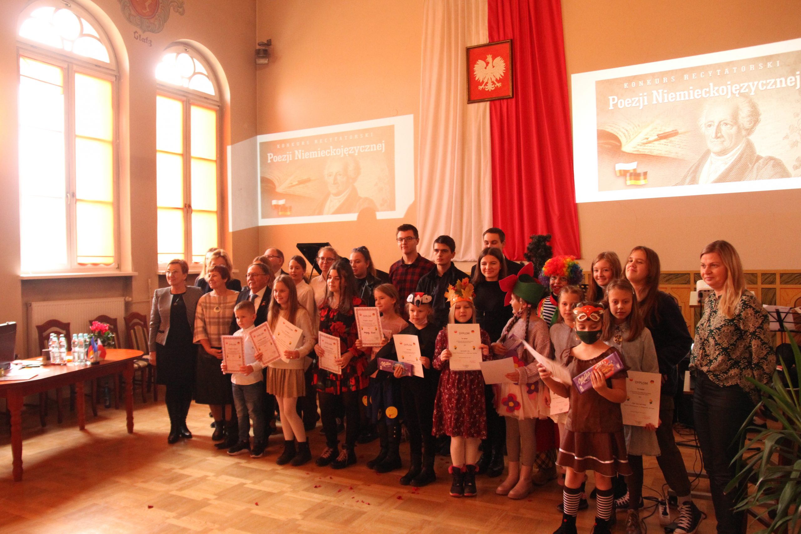 W czwartek 18 listopada 2021 roku odbył się w naszej szkole „Konkurs Recytatorski Poezji Niemieckojęzycznej”. Przedsięwzięcie zostało zorganizowane przez Niemieckie Towarzystwo Społeczno- Kulturalne w Kłodzku oraz germanistów ZSO H.P Keutena, M.Gacek oraz L. Brzezicką. Honorowy Patronat nad Konkursem objął Konsulat Republiki Federalnej Niemiec w Opolu.