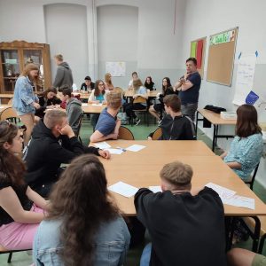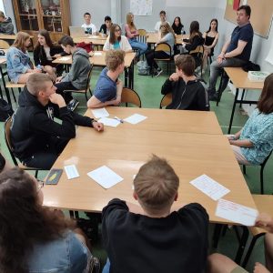 Dnia 16.05.2022 r. młodzież z klas 2a i 2b liceum uczestniczyła w warsztatach zorganizowanych przez Fundację Wspierania Edukacji i Rozwoju Fundacja Wspierania Edukacji i Rozwoju Innowatorium Zajęcia miały na celu wzmocnienie kompetencji społecznych i obywatelskich. Na spotkaniu wykorzystano grę Coop Axle.