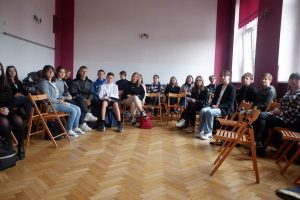 17.05.2022r. młodzież z klas drugich kontynuowała warsztaty, zorganizowane przez Fundacja Wspierania Edukacji i Rozwoju Innowatorium . Drugiego dnia zostali zaproszeni goście– mający wpływ na rozwój gminy: Pani Burmistrz Bystrzycy Kłodzkiej – Renata Surma, wiceprzewodniczący Rady Powiatu Kłodzkiego Pan Robert Duma oraz Pani Agnieszka Jędrak – radna gminy Bystrzyca Kłodzka. Nasi goście nie tylko opowiedzieli o swojej pracy i kierunku zmian w gminie, ale też wzięli udział w debacie, którą poprowadzili sami uczniowie.