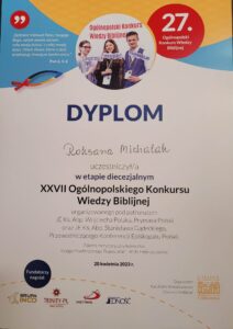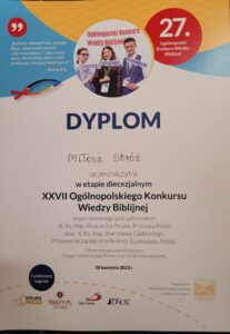 Ogólnopolskiego Konkursu Wiedzy Biblijnej 20 kwietnia w Wałbrzychu odbył się etap diecezjalny Ogólnopolskiego Konkursu Wiedzy Biblijnej. Naszą szkołę reprezentowali: Roksana Michalak i Miłosz Stróż. Dziękujemy!