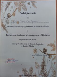 Powiatowy Konkurs Matematyczny z Mikołajem